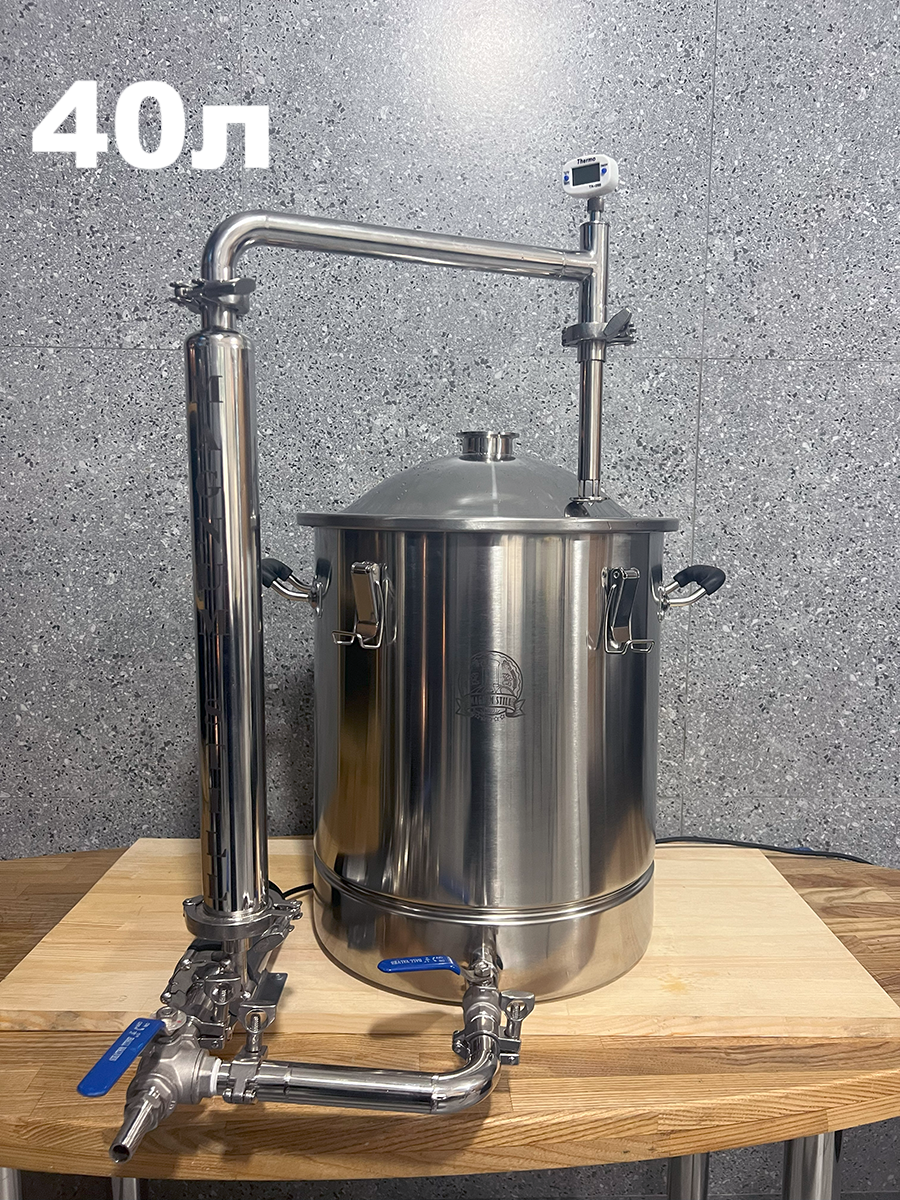 1) Перегінний куб 40л з клампом під тен, купольною кришкою та ніпелем під термометр - 1 шт.